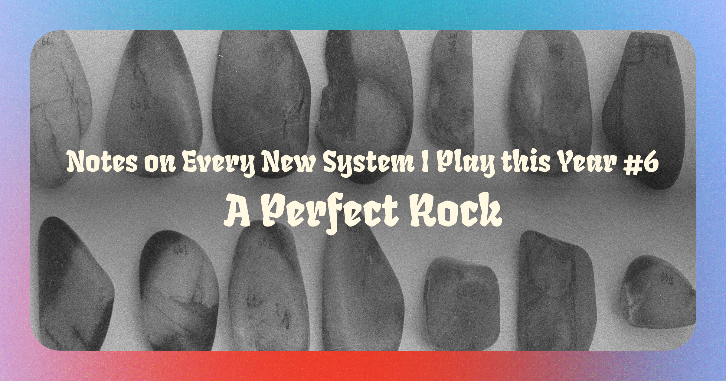 The game itself is very simple, which it can be, because in addition to these two prompts, you of course also get to choose one of the rocks you collected. And rocks are complex. Their features essentially act as a "hidden" third table that multiplies the possible inspirational prompts by an incredibly large factor. It's a genius design that made me think of the way some companies use lava lamps to produce random numbers.